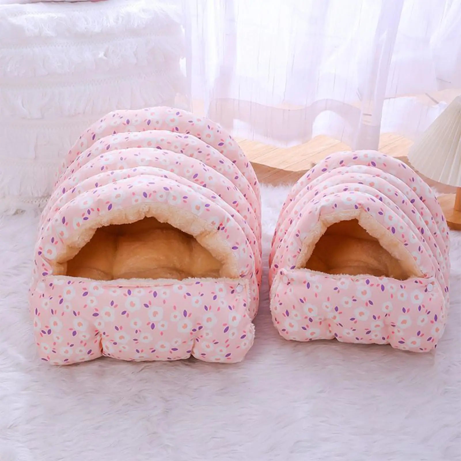 Pet Enclosed Nest Winter Warm Fully Enclosed Cat Sleeping Bag Washable Fluffy Cats Calming Cave Tent for Small Dogs